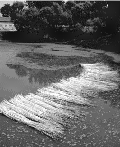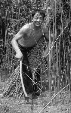 rope. Hemp stalks are tied together to make crude walls for field shacks and are