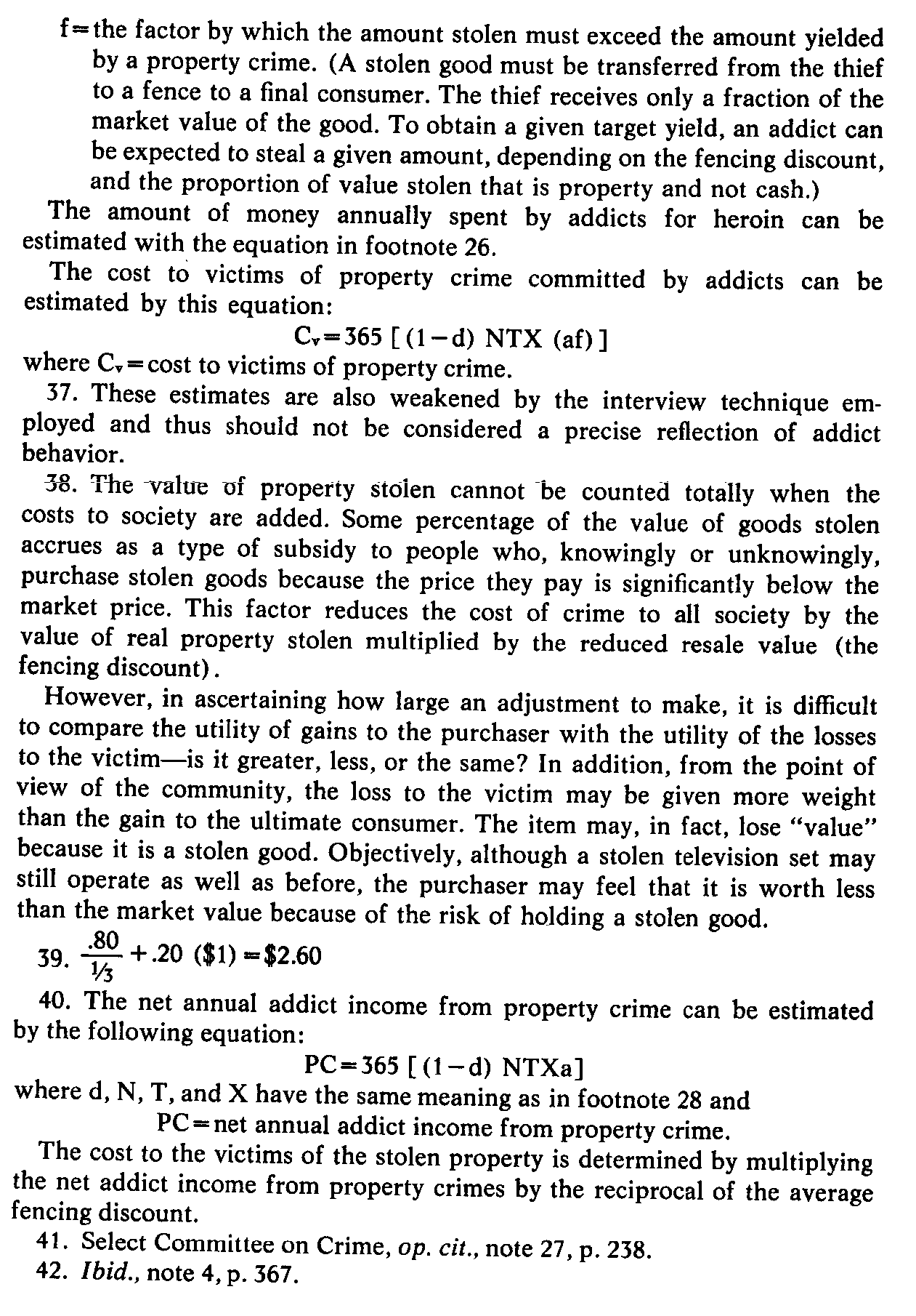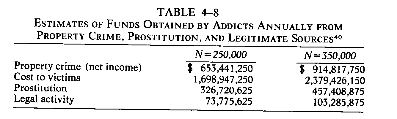 40. The net annual addict income from property crime can be estimated